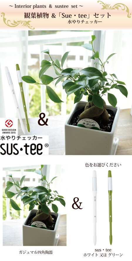 (観葉)『 ガジュマル四角陶器 + サスティーM 』植物水分計セット ガジュマル 多幸の樹 幸福の木 観葉植物 インテリア 鉢植え 開店 引越し 祝い 引越し祝い 新築祝い 誕生日 インテリア グリーン 観葉 FKTK