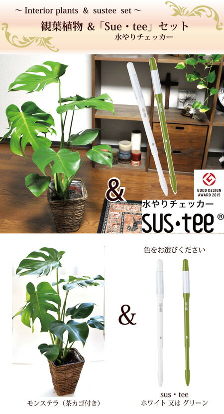 (観葉)『 モンステラ茶カゴ + サスティーMサイズ付き 』高さ50センチ以上〜植物水分計 インテリア 鉢植え 開店 引越祝 新築祝い 誕生日 法人 ビジネスモンステラ【即日発送】グリーン 観葉 ギフト 6号サイズ FKTK
