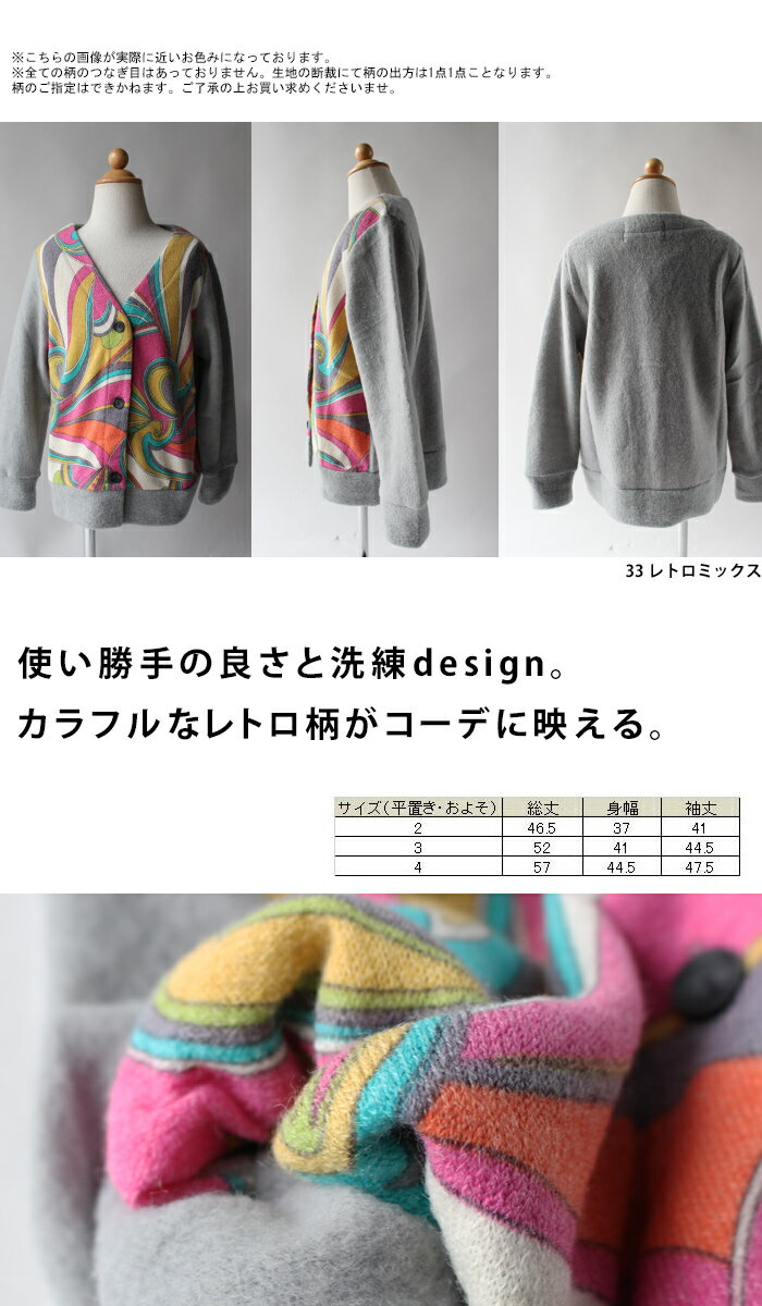 視線を独り占めするアートなレトロ柄。レトロ柄カーデ・再販。(80)◎メール便可!