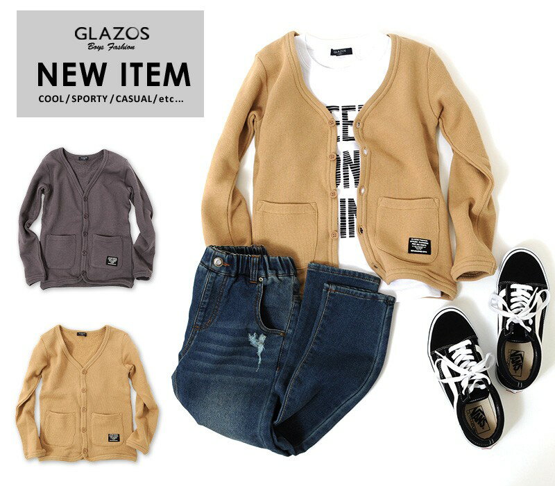 【マラソン限定価格】【GLAZOS】柔らかカーディガン 子供服 男の子 カジュアル アメカジ キッズ ジュニア 長袖 羽織 120cm 130cm 140cm 150cm 160cm グラソス 2019年春夏新作