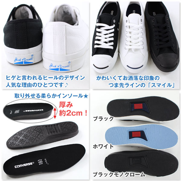 有料ラッピング対応■商品詳細 ■ブランド CONVERSE コンバース ■商品名/品番 JACK PURCELL CANVAS ジャックパーセル キャンバス ■カラー ブラック 黒色 ホワイト 白色 ブラックモノクローム 黒色 ■取扱いサイズ 4.0/4.5/5.0/5.5/6.5/7.0/7.5/8.0/8.5/9.0/9.5 23.0cm/23.5cm/24.0cm/24.5cm/25.0cm/25.5cm/26.0cm/26.5cm/27.0cm/27.5cm/28.0cm ■素材 《アッパー》キャンバス 《アウトソール》ラバー ■ワイズ(横幅) 細身の1E相当 ■靴の詳細(8.0[26.5cm]採寸) 《ソール高》接地面より約 3.0 cm 《履き口までの高さ》約 8.5 cm(ソール部分も含む) 《履き口周り》紐で調節出来ます 《重量》片足 約 404 g ■サイズについて 普通のALLSTARと同じラスト(靴型)なので、やや幅が細めです。